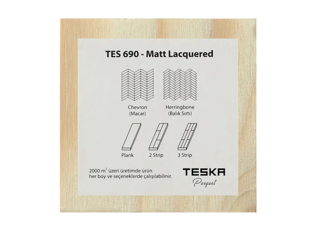 En üst tabakada, yoğun trafik alanlara dayanıklı cila, wax veya yağ kullanılmaktadır. Ürünlerin yüzeyleri fırçalı veya düz, dört kenarı ise, bir mm veya iki mm pahlı olarak üretilmektedir.